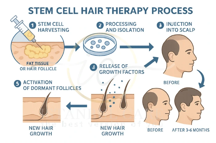 In liposuction stem cell therapy, regenerative cells extracted from the patient’s fat tissue are separated through a specialized processing system. These high-potency stem cells are injected into the areas of thinning to revive dormant follicles and support new, stronger hair growth. Because these stem cells come from adipose tissue, they have excellent regenerative capacity, improving scalp health and enhancing results when used together with transplantation procedures.